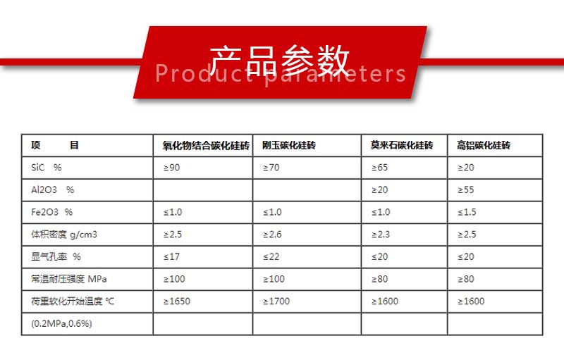 以碳化硅為主要原料制成的耐火制品。碳化硅含量72%~99%。一般選用黑色碳化硅(SiC含量96%以上)作原料,加入結合劑(或不加結合劑),經配料、混合、成型及燒成等工序制得。主晶相為碳化硅。主要品種有氧化物結合碳化硅磚、碳結合碳化硅磚、氮化物結合碳化硅磚、自結合碳化硅磚、再結晶碳化硅磚和半碳化硅磚等。具有耐磨、耐侵蝕性好,高溫強度大,熱震穩(wěn)定性好,導熱率高,熱膨張系數小等特性,屬高性能耐火材料。